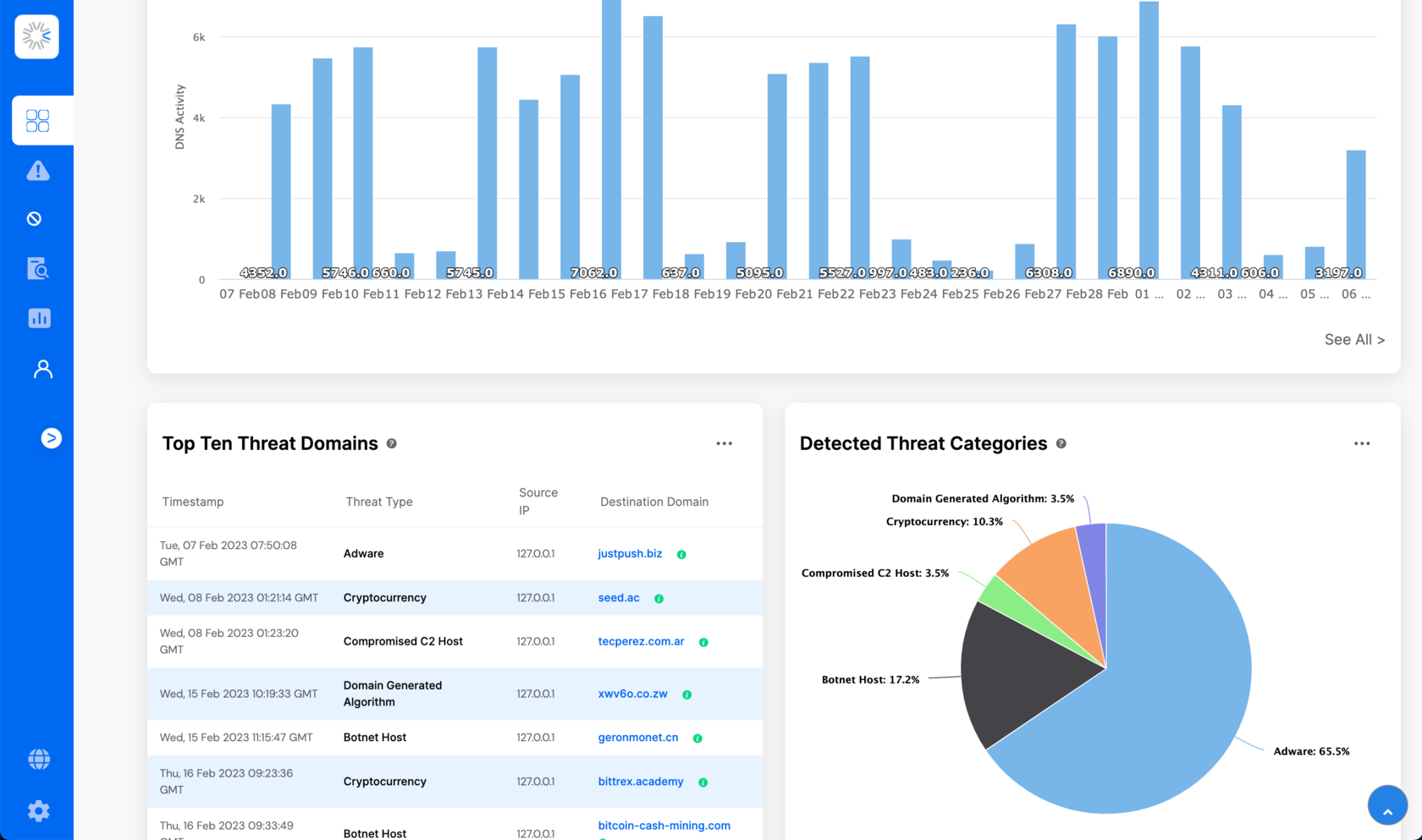 60秒毎に最新情報に更新される脅威データを用いてDNSの不正通信をブロックします。